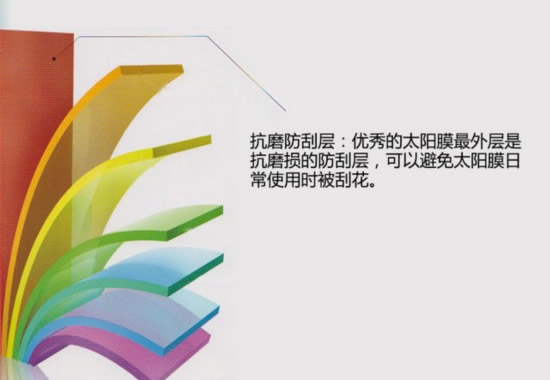 贴膜后,贴膜的表面就替代了玻璃表面与外界接触,所以贴膜的外层需要具有一定硬度和防刮性能,以免在日常使用中被刮花,造成视线模糊。所以质量好的贴膜在最外层都设计有防刮伤层,这层经过特殊技术处理的外层,是贴膜不受外力伤害的保障。···